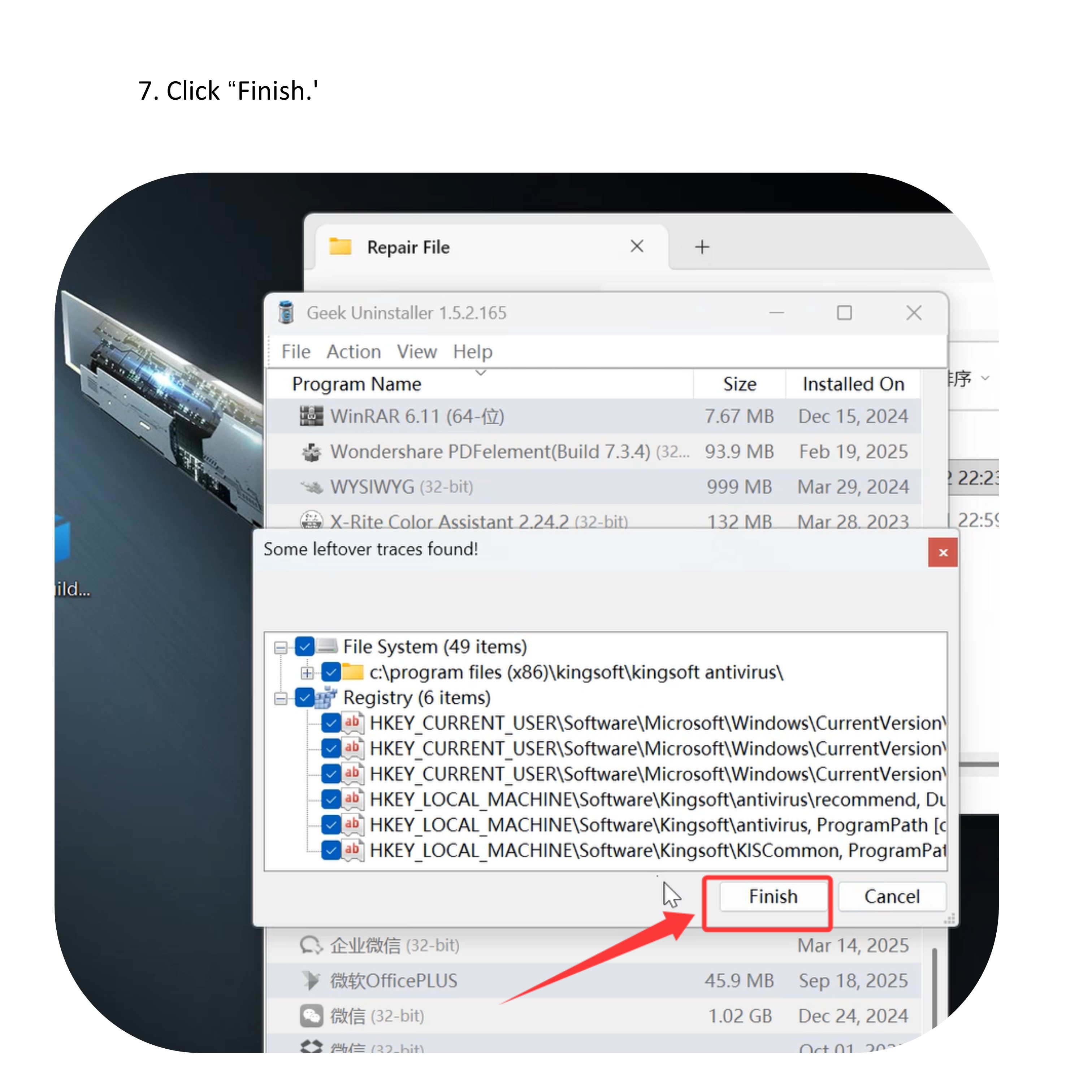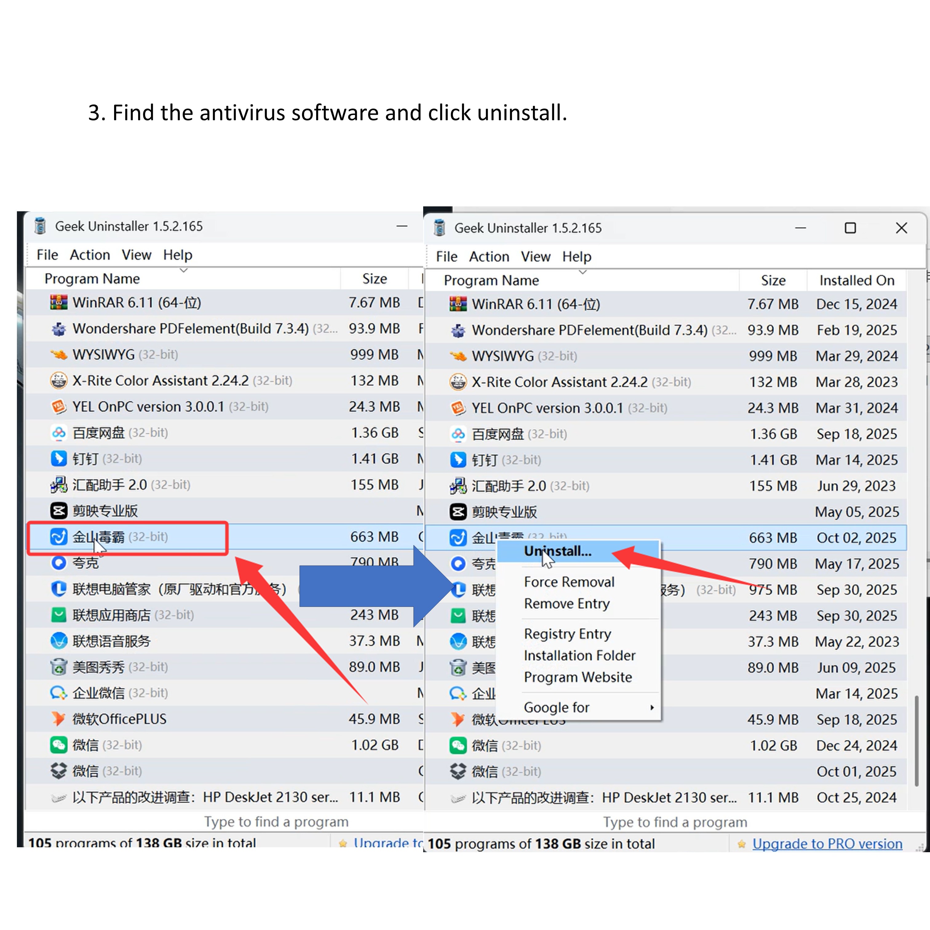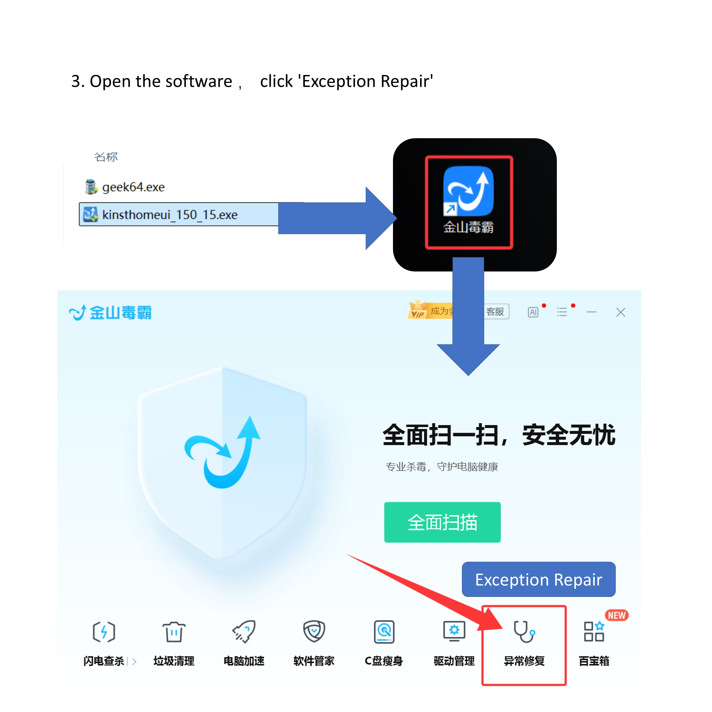 1.Repair completed, uninstall the Kingsoft Antivirus software. (Uninstallation Tutorial)