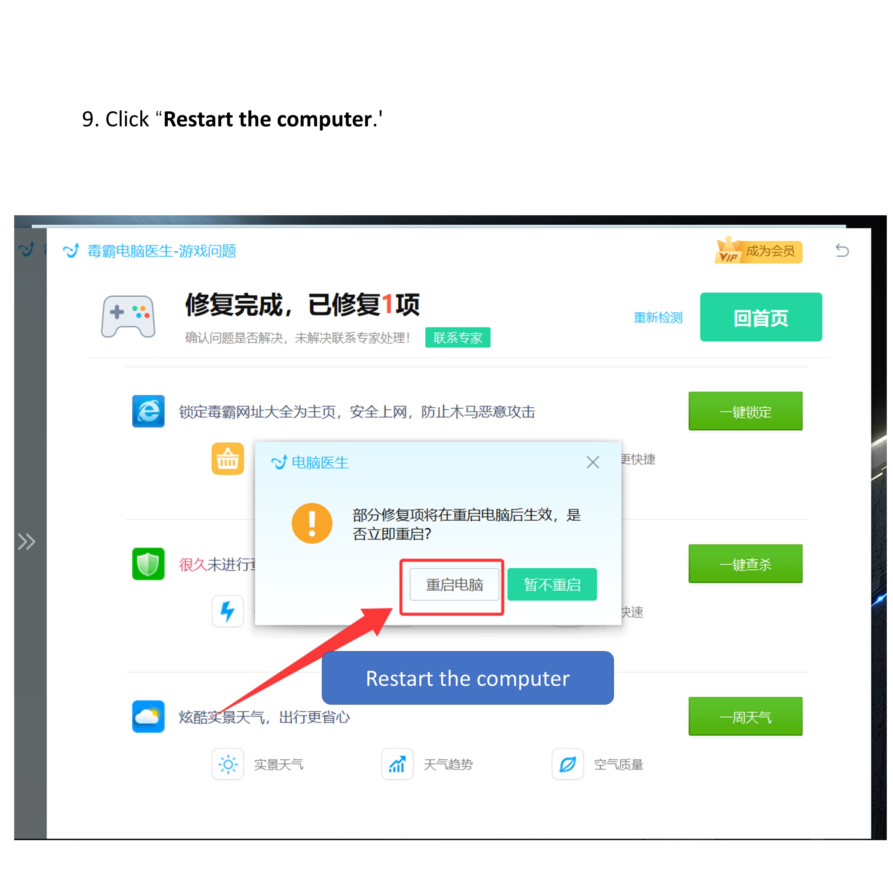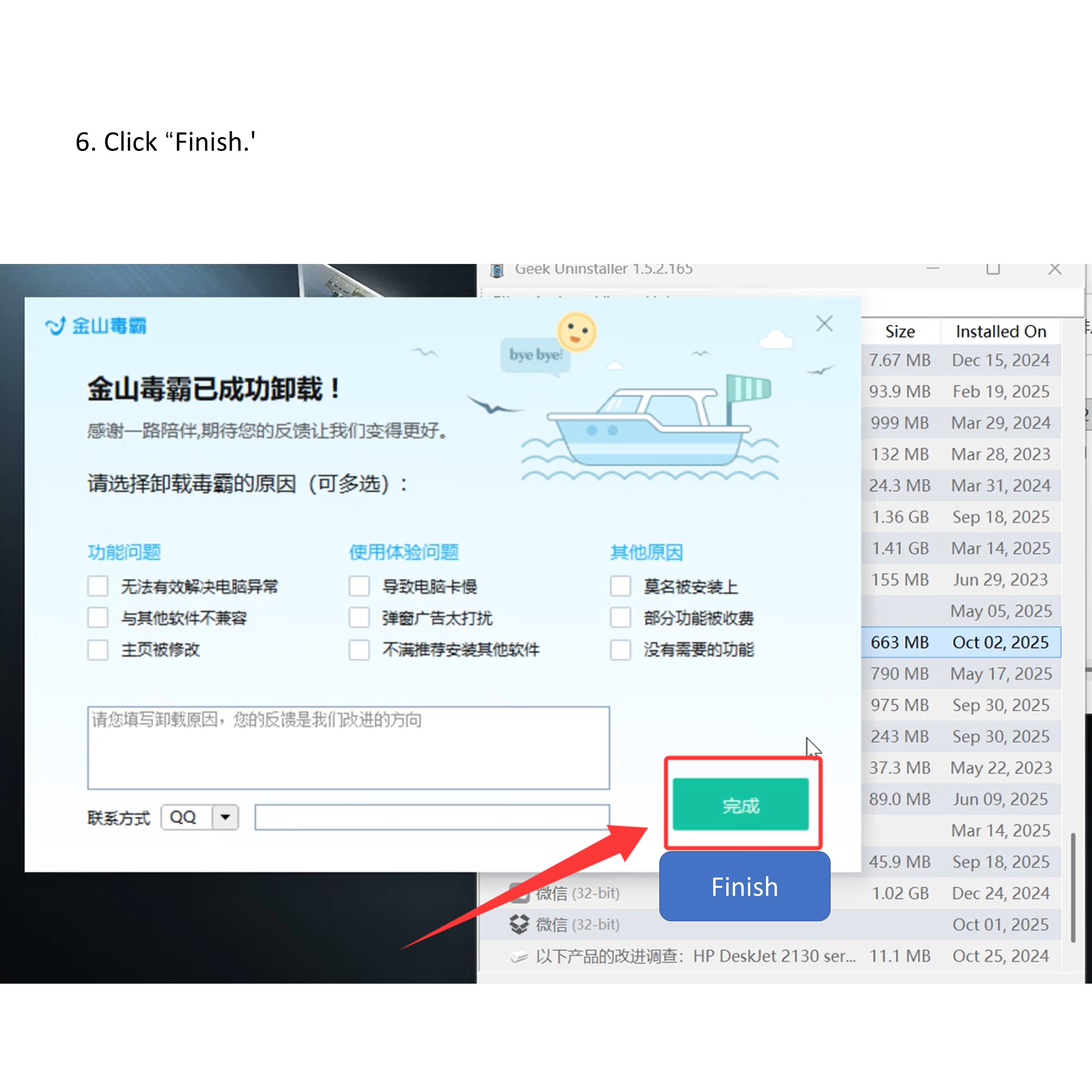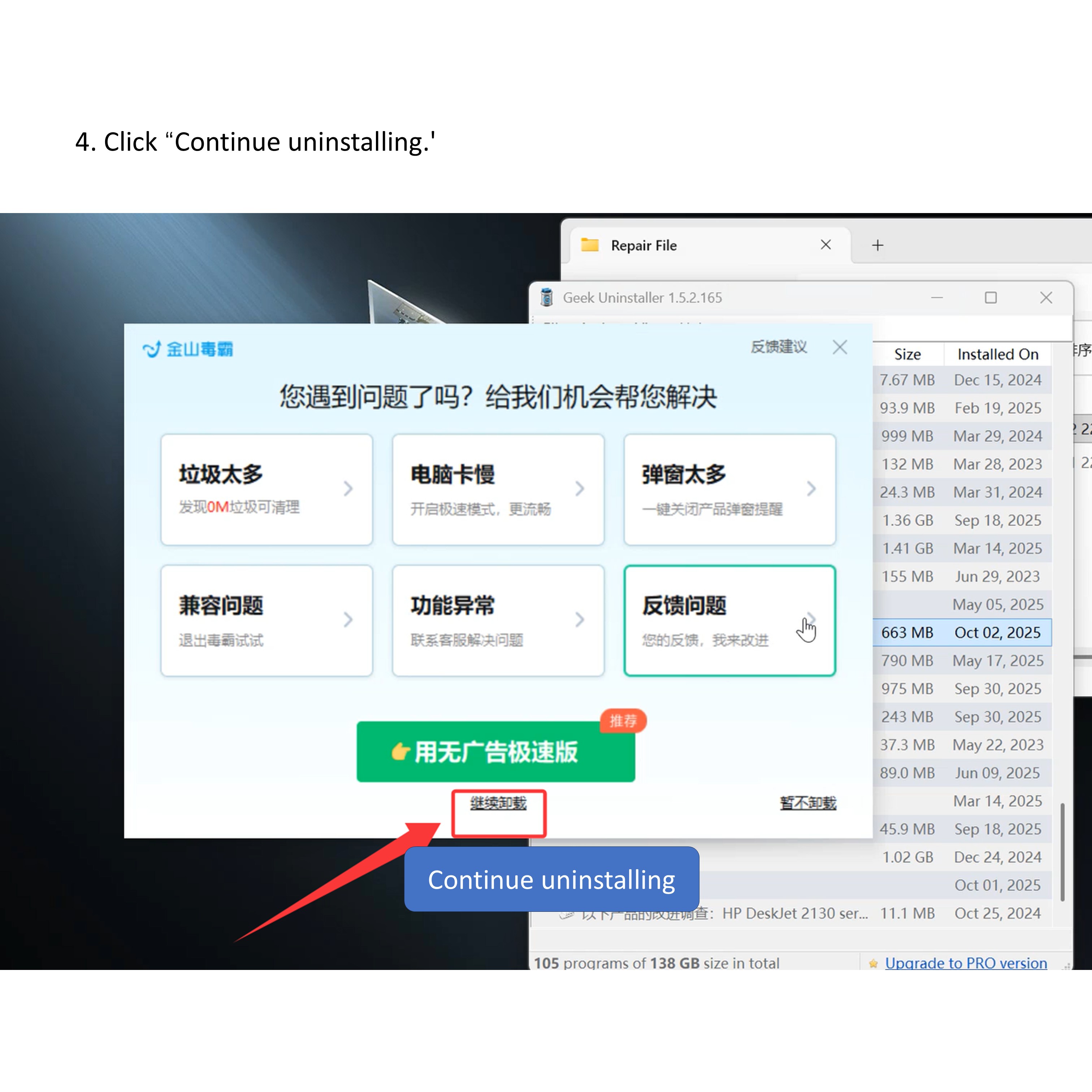 1.Repair completed, uninstall the Kingsoft Antivirus software. (Uninstallation Tutorial)