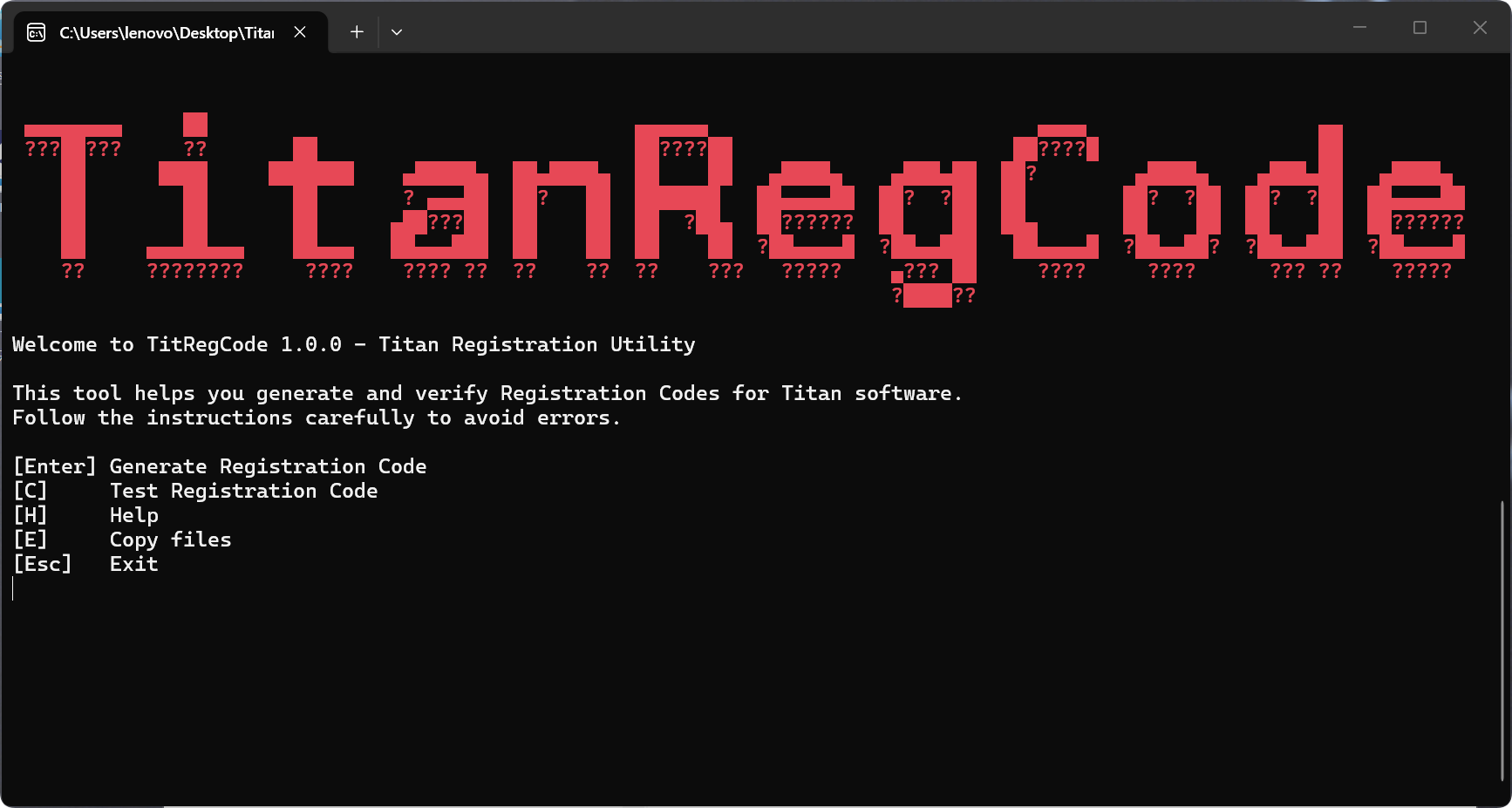 If TitRegCode.exe cannot open or crashes immediately when you try to open it, it means it is not compatible with your computer. Your only option is to use a different computer.