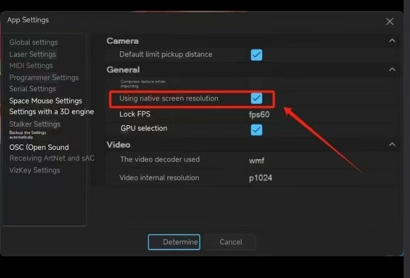 - Open the computer software menu bar – Settings – Applications – 3D Engine – Local Screen Resolution and select this.