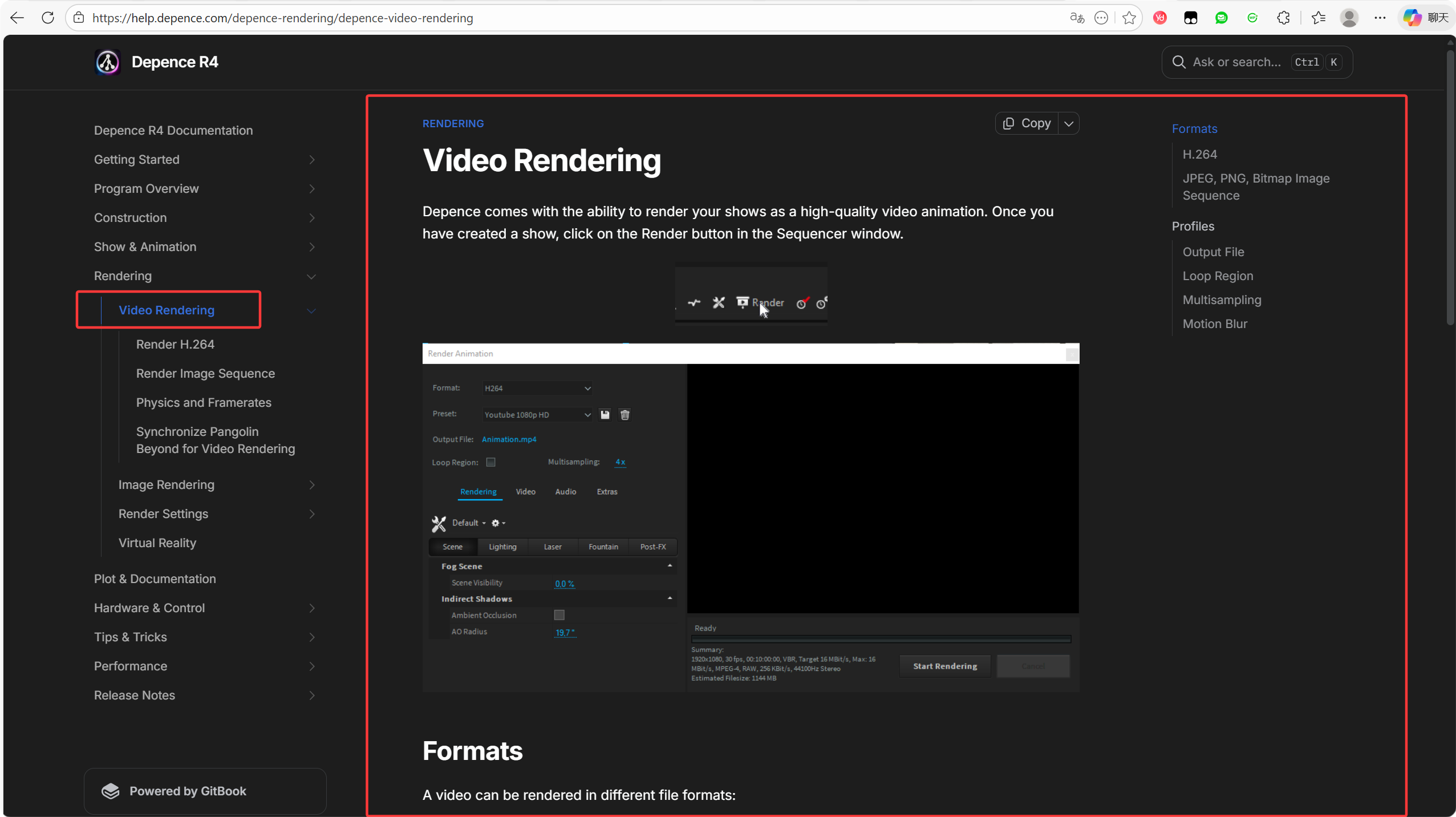 Formats: * H.264: Renders an MP4 video with audio. Best for YouTube or sending directly to clients.
