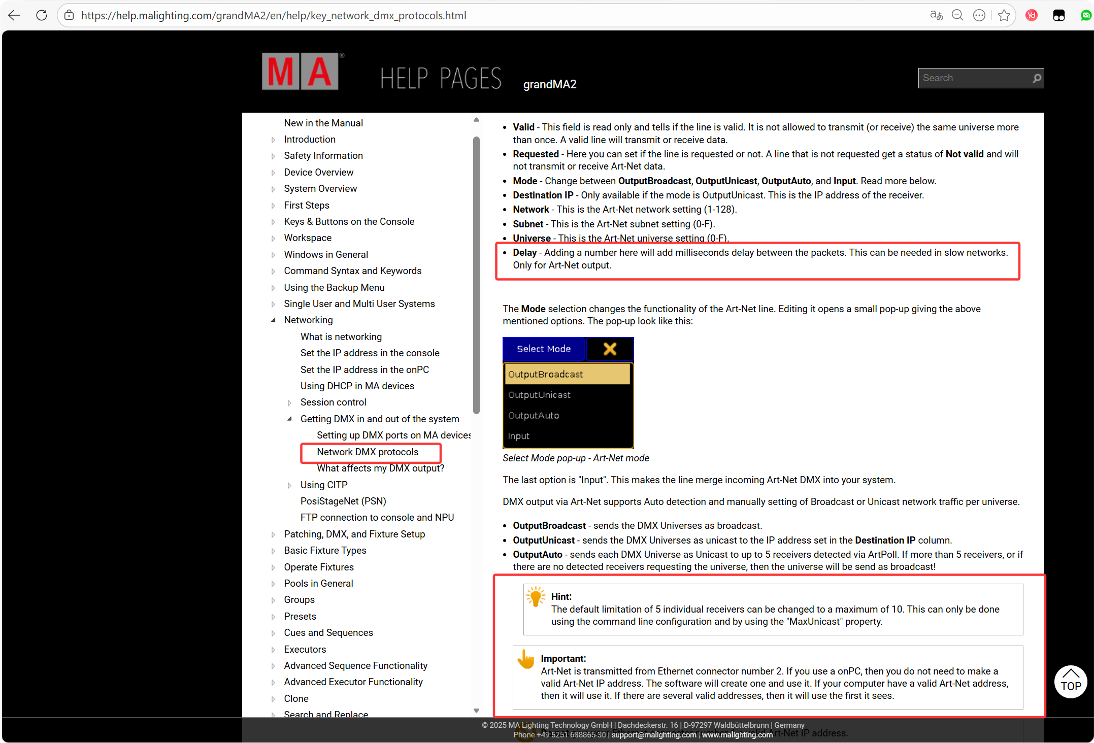 MA Console Tip: MA-Net primarily uses Multicast. When sending Art-Net, MA defaults to Broadcast but can be manually configured to Unicast for better performance.
