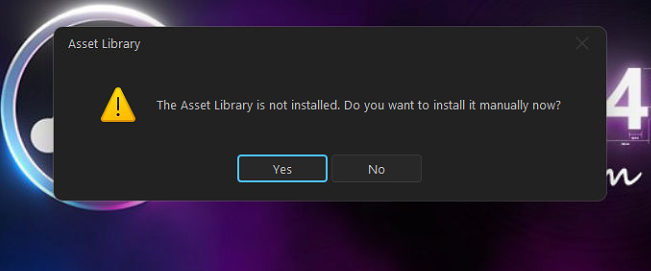 Depence R4 V4.0.12 has been installed. When opening the software, it prompts: ‘The Asset Library is not installed. Do you want to install it manually now?’ How can this be resolved?