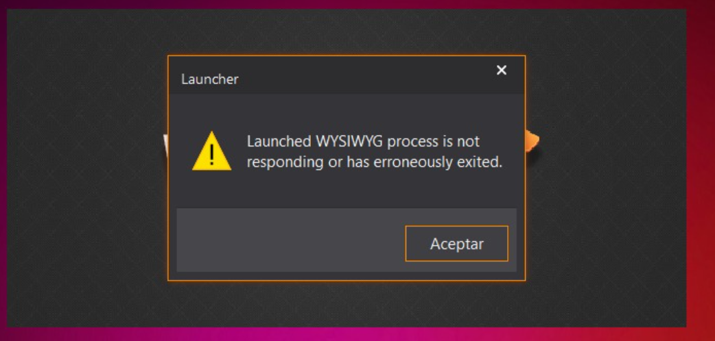 Install Wysiwyg R44 popup launcher: The launched WYSIWYG process is not responding or has exited with an error.How to solve it?