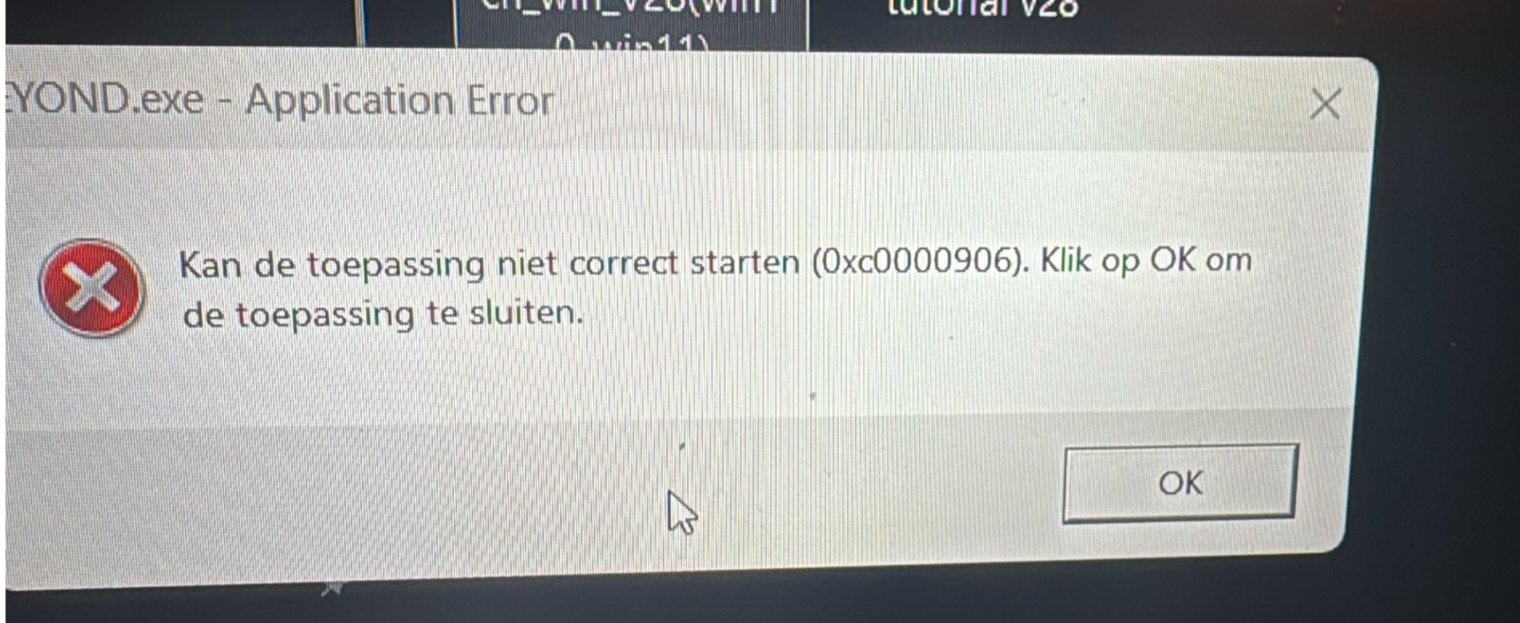 BEYOND.exe Application Error (0xC0000906) – Unable to Open Beyond